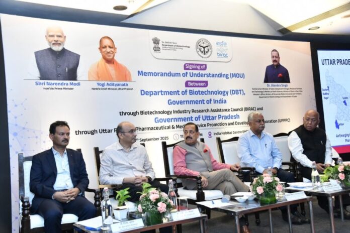 New Delhi: The Department of Biotechnology (DBT), Government of India, through its public sector enterprise Biotechnology Industry Research Assistance Council (BIRAC), has entered into a landmark Memorandum of Understanding (MoU) with the Government of Uttar Pradesh, facilitated by the Uttar Pradesh Promote Pharma Council (UPPPC).
